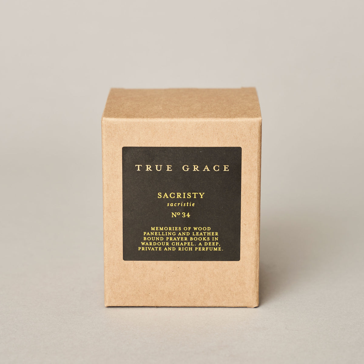 Our smaller 20cl candle, hand-poured, using a blend of renewable vegetable and natural waxes, and a pure cotton wick. Presented in a timeless glass branded with the True Grace emblem, this Sacristy Candle was inspired by our life in the country and made by hand in our carbon neutral Wiltshire factory.
