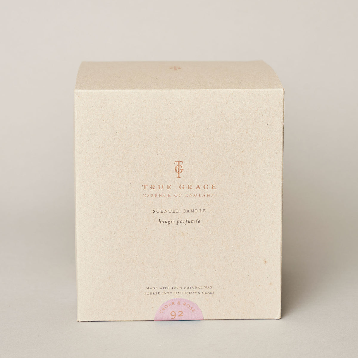 Our Cedar & Rose Large Candle fills the room with a timeless and elegant scent, rich with notes of Dewy Rose, White Cedarwood and Geranium. Handmade in small batches, using a blend of natural and renewable vegetable wax, this large Burlington candle has a clean and even burn time of 95 hours. Beautifully presented in hand blown amber glass, it's perfect for keeping the living room, fresh.