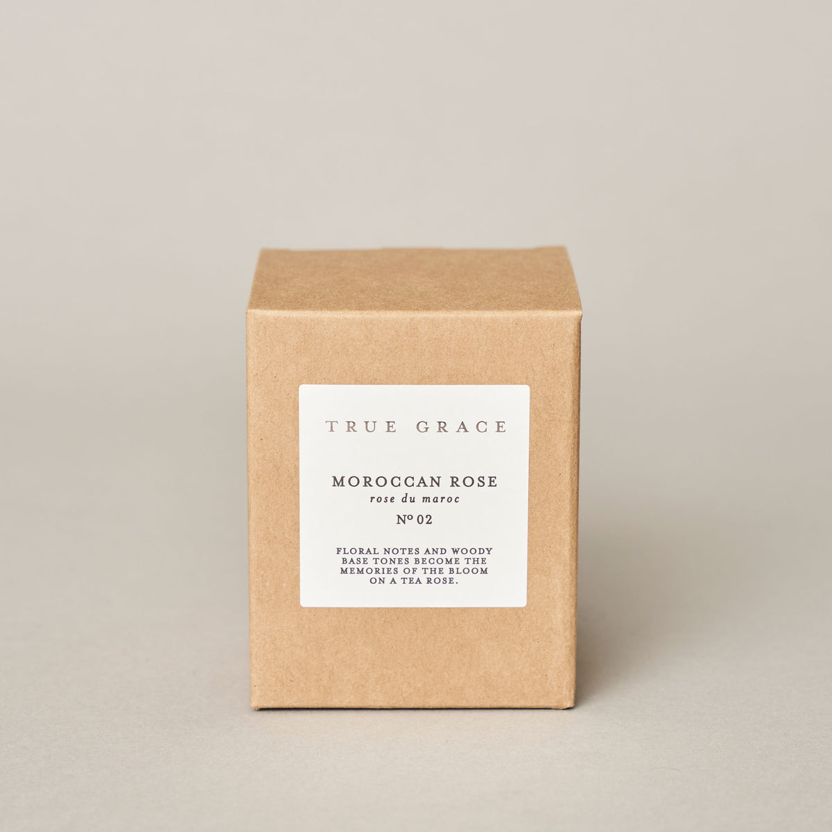 Our Moroccan Rose Classic Candle fills the room with a timeless and elegant scent, rich with notes of Garden Rose, Sandalwood and Citrus. Handmade in small batches and beautifully presented in a timeless glass vessel complete with the True Grace emblem, this classic candle has a burn time of 40 hours and is perfect for keeping the Bedroom, Bathroom, Hallway, fresh.