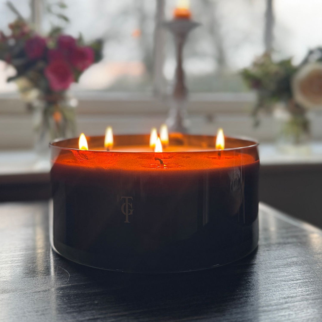 Our Moroccan Rose Large 6 Wick Bowl fills the room with a bright and floral scent, rich with notes of Garden Rose, Sandalwood and Citrus. Handmade in small batches, using a blend of natural and renewable vegetable wax, this candle has a clean and even burn time of 80 hours. Beautifully presented in a hand blown amber glass, it's perfect for keeping the living room, fresh.