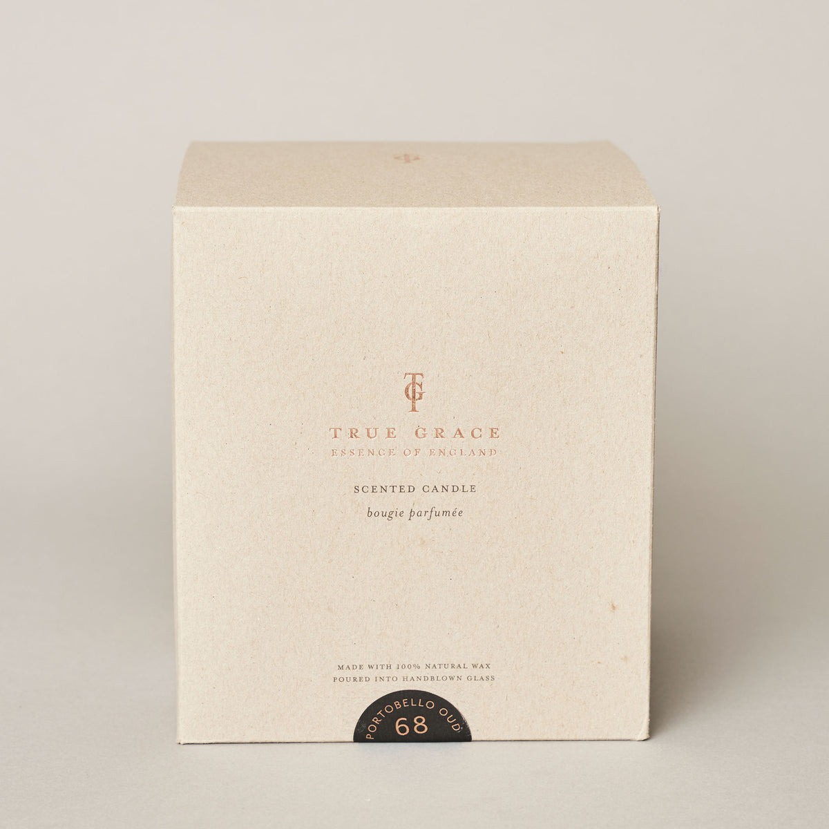 Our Portobello Oud Large Candle fills the room with a luxurious, woody and spicy scent, rich with notes of Patchouli, Leather, Sandalwood and Ginger. Handmade in small batches, using a blend of natural and renewable vegetable wax, this large Burlington candle has a clean and even burn time of 95 hours. Beautifully presented in hand blown amber glass, it's perfect for keeping the living room, fresh.