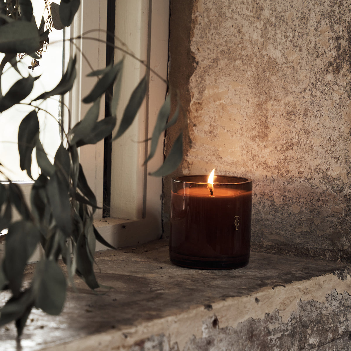 Our English Medium Candle fills the room with a mouth-watering and layered scent, rich with notes of Cedarwood, Basil, Cypress and Black Pepper. Handmade in small batches, using a blend of natural and renewable vegetable wax, this medium Burlington candle has a clean and even burn time of 45 hours. Beautifully presented in hand blown amber glass, it's perfect for keeping the Living Room, Study, Hallway or Dining Room, fresh.