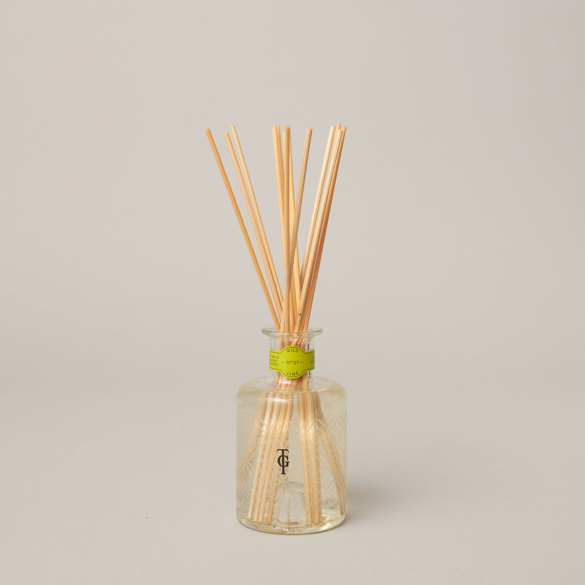 Our Wild Lime Diffuser Set fills the room with a zesty scent. Made in small batches at our Wiltshire factory and fragrant with citrus notes, this Village diffuser is perfect for keeping the Kitchen or Bathroom, fresh. Presented in a timeless etch-effect glass bottle, this diffuser contains 20% fragrance – the equivalent of a ‘pure perfume’ and stays fresh for up to 10 weeks.