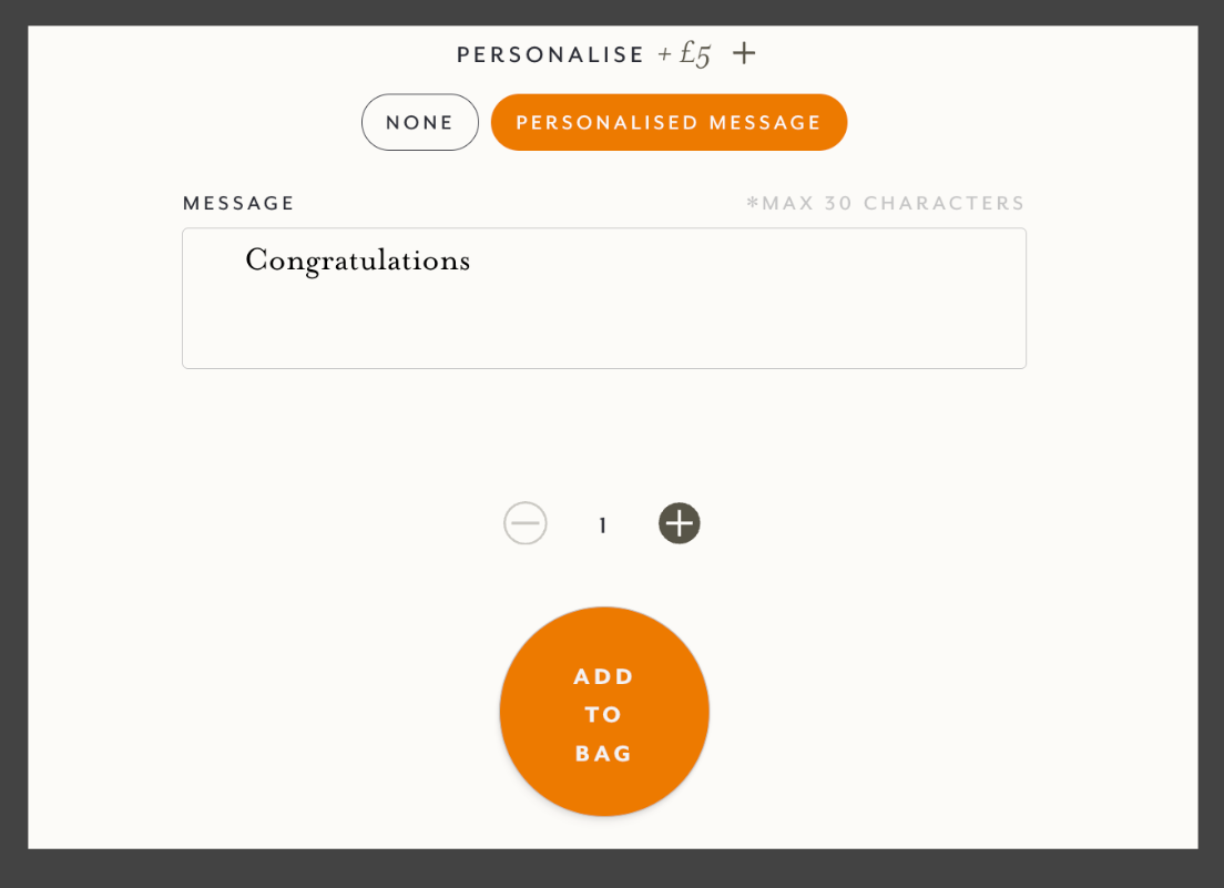 Please ensure that you use your desired case letter (upper case/lower care) when adding your personalised message.