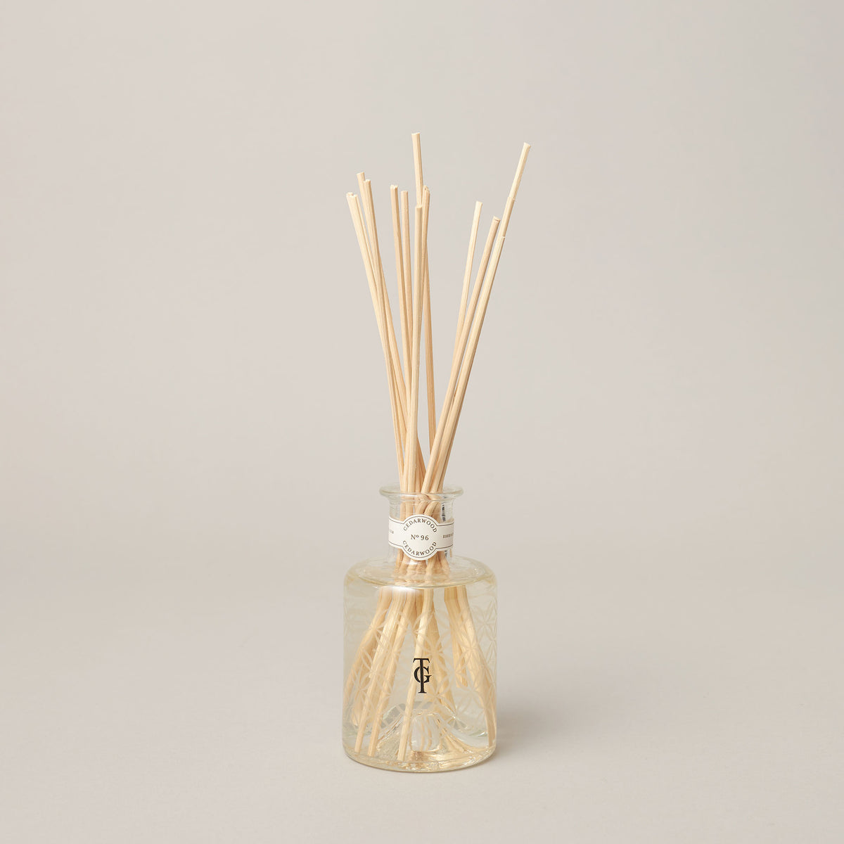 Our Cedarwood Diffuser Set fills the room with a warm and woody scent. Made in small batches at our Wiltshire factory and fragrant with notes of Cedar tree, Amber, Sandalwood and Musk, this Village diffuser is perfect for keeping the living room or study, fresh. Presented in a timeless etch-effect glass bottle, this diffuser contains 20% fragrance – the equivalent of a ‘pure perfume’ and stays fresh for up to 10 weeks.