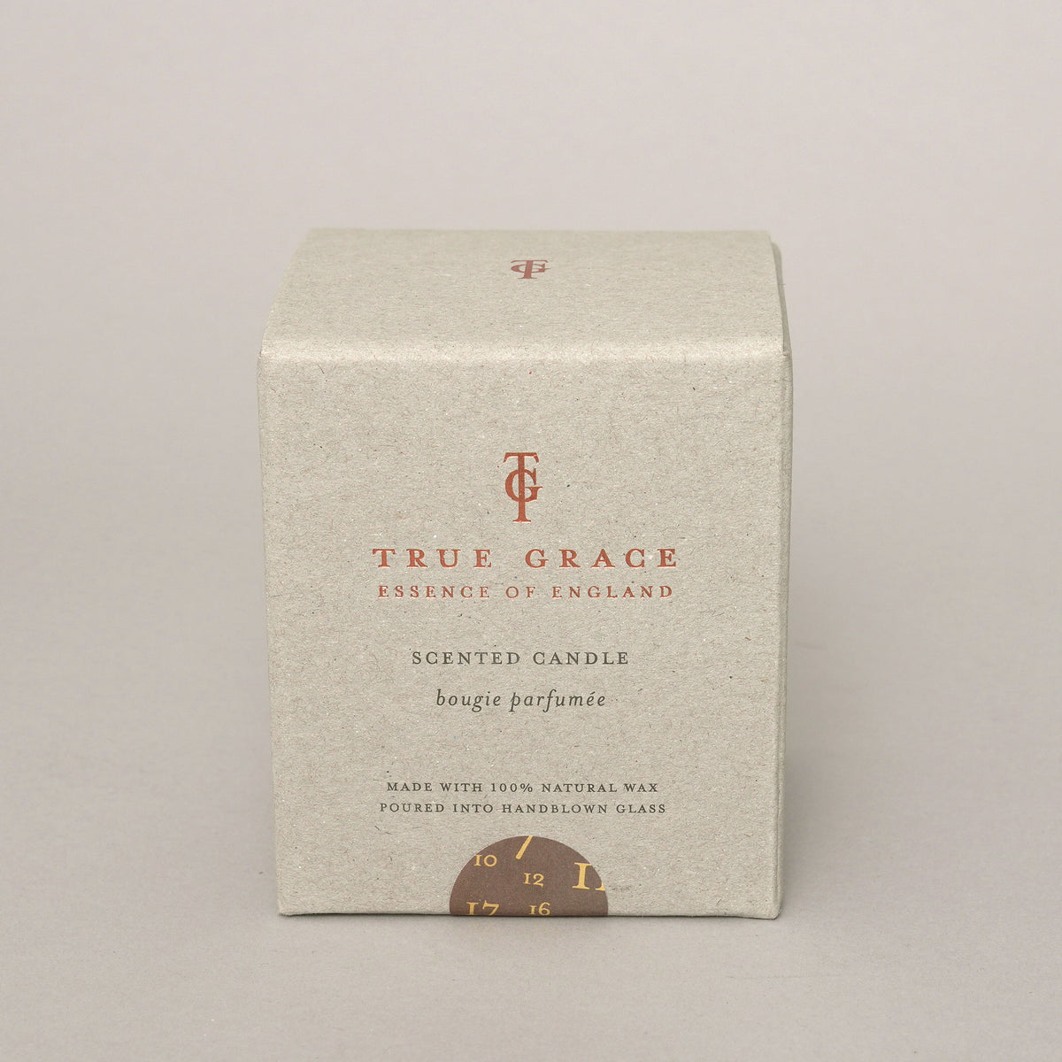 Presented in hand-blown amber glass, the candle adds a haven of cosiness and festive cheer to any home.
