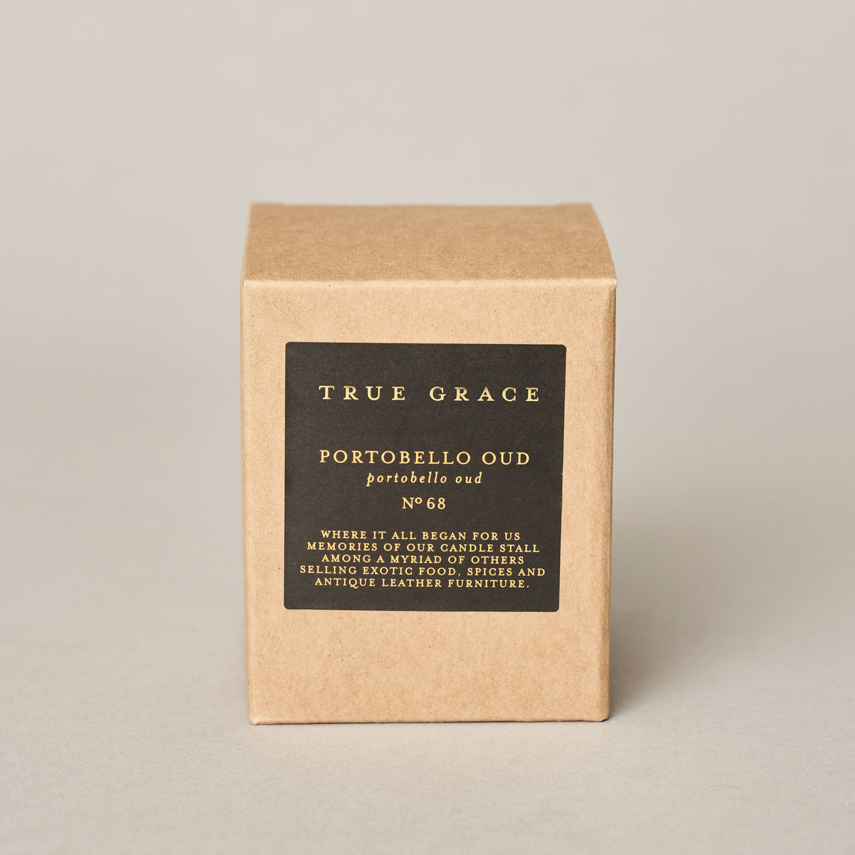 Our Portobello Oud Small Candle fills the room with a spicy and woody scent, rich with notes of Patchouli, Leather, Sandalwood & Ginger. Handmade in small batches and beautifully presented in a timeless glass vessel complete with the True Grace emblem, this small 20cl candle has a burn time of 30 hours and is perfect for keeping the Living Room or Study, fresh.